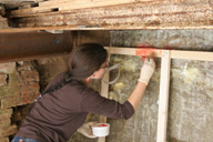 6. Nach einigen anderen Arbeitsschritten, konnte der Trägerrahmen, eine einfache Dachlattenkonstruktion, festgesetzt werden.