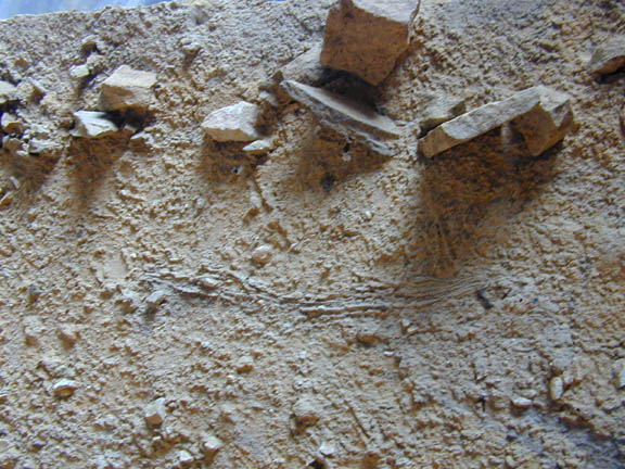 Bielefeld Innenstadt, Ton, Silt, Sand, Holz und Knochen. Oberhalb Tierspuren