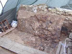 freigelegt. Unterhalb dieser Mauern befanden sich Spuren von Auffüllungen mit