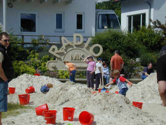Der Sender "Radio MK (Märkischer Kreis)" bestellte anläßlich eines Sommerfestes im Floriansdorf in Iserlohn, sein Logo. Dieses Logo sollte aussehen als bestände es aus Sand, weil eine der Hauptattraktionen des Festes die " Kreismeisterschaft im Sandburgenbau" war. Als Mannschaften traten die, bereits bei den Ausscheidungswettbewerben erfolgreichen Teams an, immer zwei Kinder und ein Erwachsener. Der Hauptpreis war eine Flugreise in die Türkei.