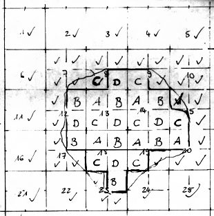 Ermittelung der Aufwölbung wurde ein Gitterraster angelegt und einige Bohrungen