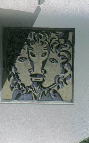 Es handelt sich um ein Relief, welches in den 70er Jahren in sgraffio Technik