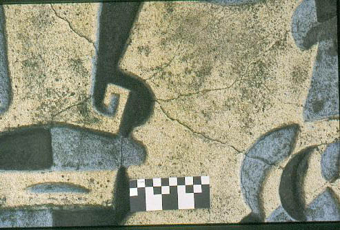 Putze aufgetragen worden. Das Objekt hat die Maße 98,5 cm mal 98,5 cm.