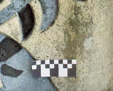 Die einzelnen Putzschichten haben eine Gesamtdicke von 2,8 cm. Darauf entfallen